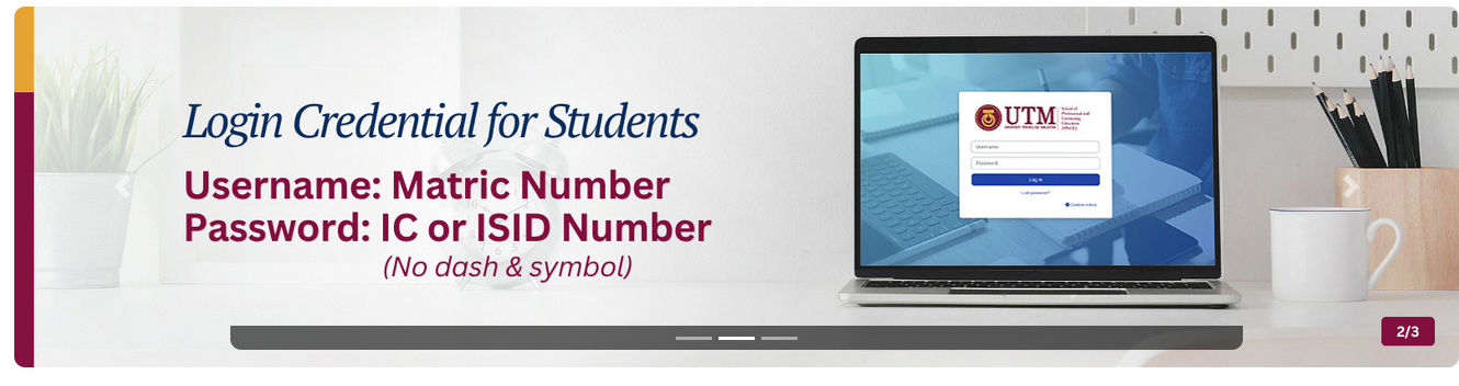 Any enquiries or problem to log in the ELearning, please don’t hesitate to contact elearning@utmspace.edu.my
